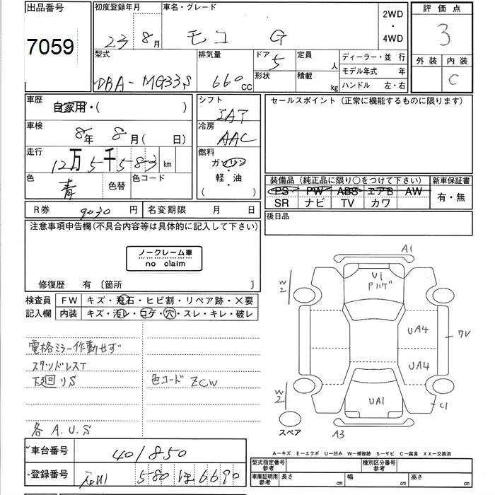| S | DBA-MG33S | R06A | FF | CVT | 658cc | 54ps(40kW)/6500rpm | AИ-92 | 1 079 400 |