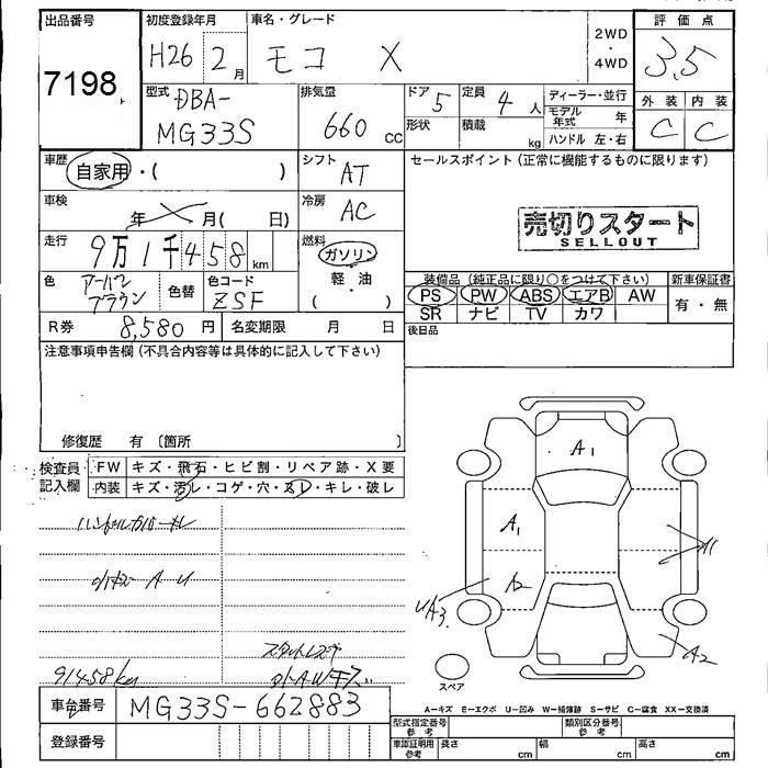 | X | DBA-MG33S | R06A | FF | CVT | 658cc | 52ps(38kW)/6000rpm | AИ-92 | 1 296 000 | |