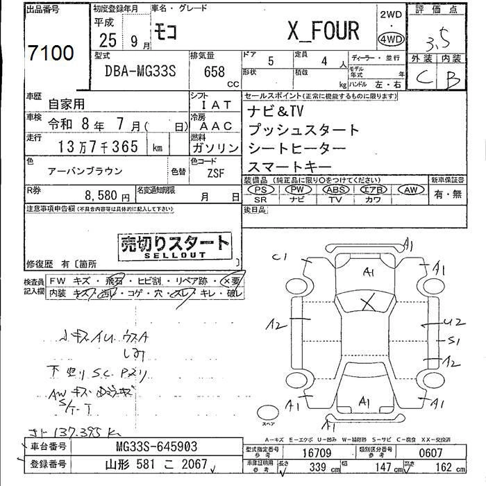 | X FOUR AERO STYLE | DBA-MG33S | R06A | Full-time 4WD | CVT | 658cc | 52ps(38kW)/6000rpm | AИ-92 | 1 514 100 | |