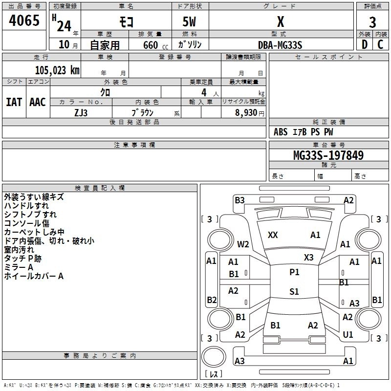 | X IDLING STOP AERO STYLE | DBA-MG33S | R06A | FF | CVT | 658cc | 54ps(40kW)/6500rpm | AИ-92 | 1 394 400 | |