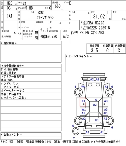 | G | CBA-MG22S | K6A | FF | 4AT | 658cc | 60ps(44kW)/6000rpm | AИ-92 | 1 247 400 | |