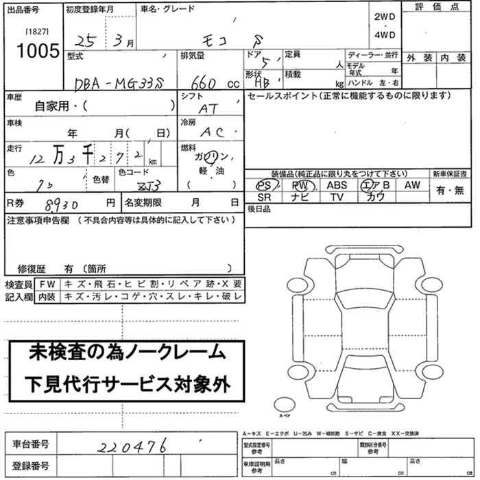 | X FOUR AERO STYLE | DBA-MG33S | R06A | Full-time 4WD | CVT | 658cc | 52ps(38kW)/6000rpm | AИ-92 | 1 514 100 | |