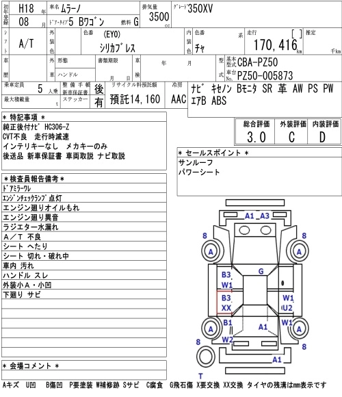 | 350XV FOUR STYLISH SILVER LEATHER | CBA-PNZ50 | VQ35DE(NEO) | Full-time 4WD | CVT | 3498cc | 231ps(170kW)/5600rpm | AИ-95 | 3 916 500 | |