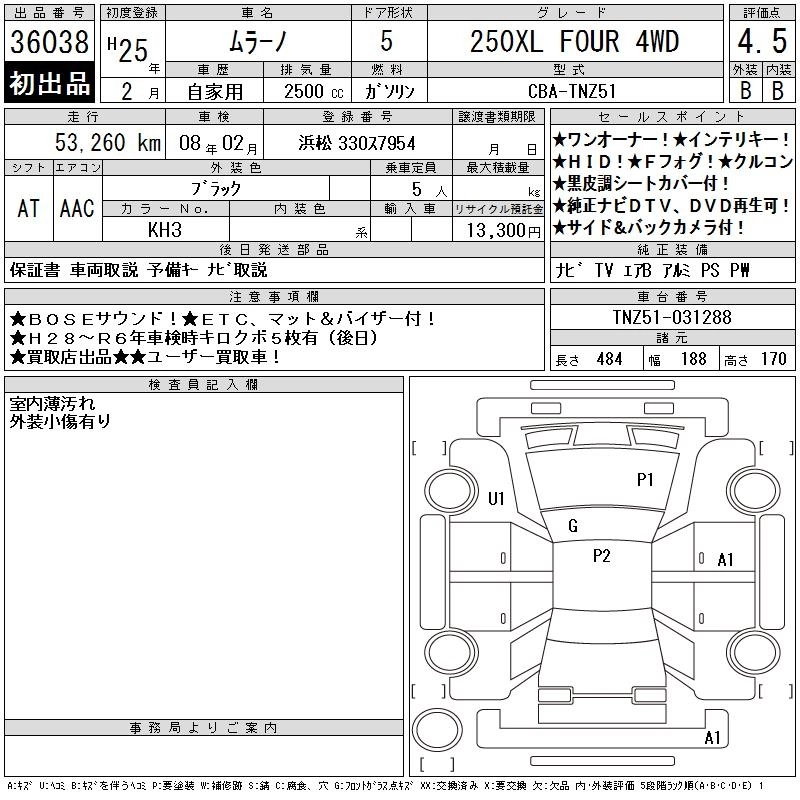 | 350XV FOUR MODE-BIANERO | CBA-PNZ51 | VQ35DE | Full-time 4WD | CVT | 3498cc | 260ps(191kW)/6000rpm | AИ-95 | 4 858 350 | |