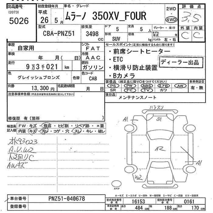| 350XV FOUR MODE-BIANERO | CBA-PNZ51 | VQ35DE | Full-time 4WD | CVT | 3498cc | 260ps(191kW)/6000rpm | AИ-95 | 4 997 160 | |