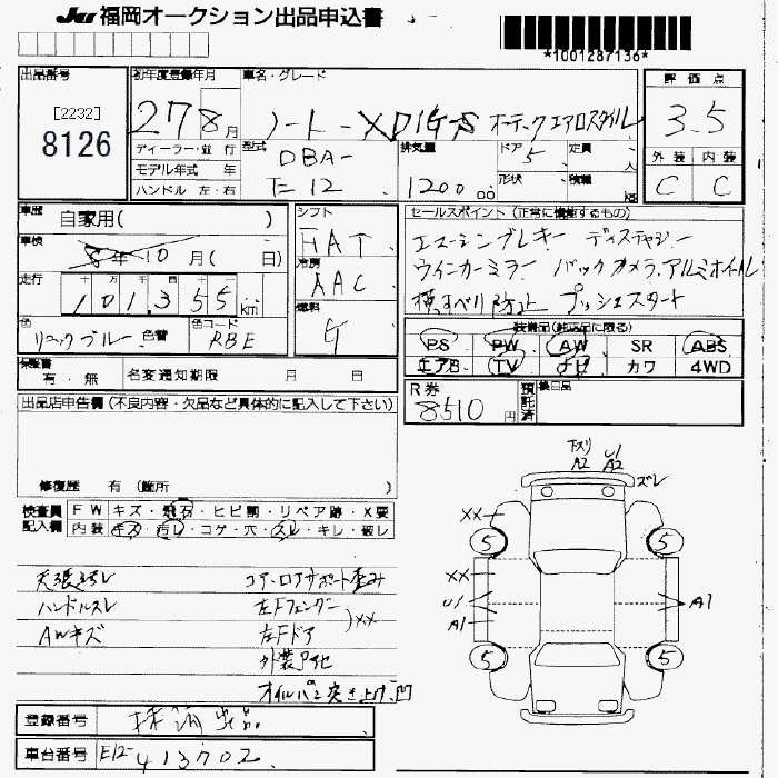 X DBA-E12 HR12DE FF CVT 1198cc 79ps(58kW)/6000rpm AИ-92 1 464 480