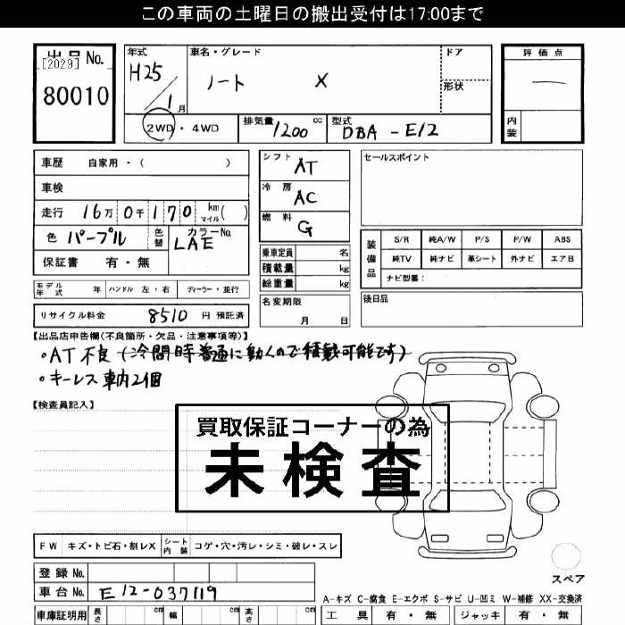 | X | DBA-E12 | HR12DE | FF | CVT | 1198cc | 79ps(58kW)/6000rpm | AИ-92 | 1 304 100 | |