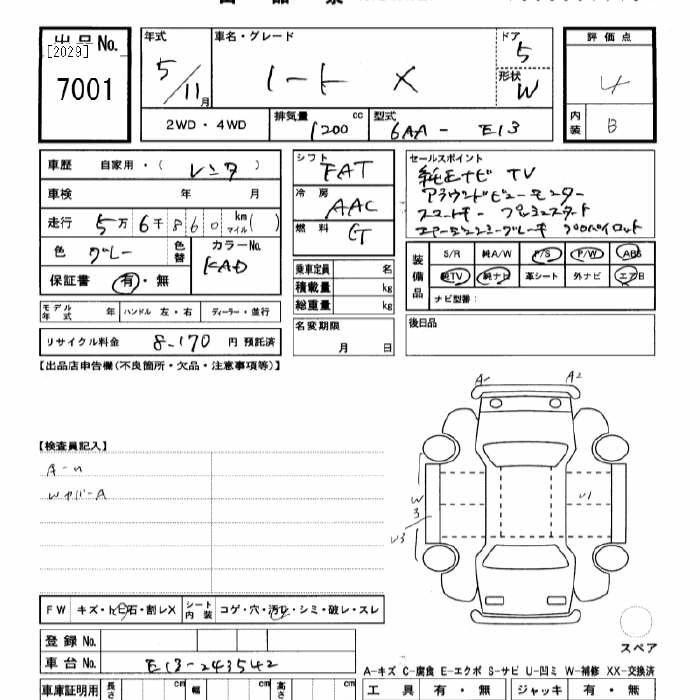 Статус выставлен на аукцион Лот 7001 Аукцион JU Gifu Дата аукциона 31.01.2026