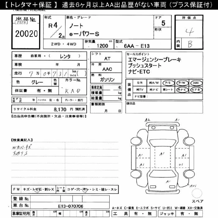NISSAN NOTE 2022 г., лот № 20020