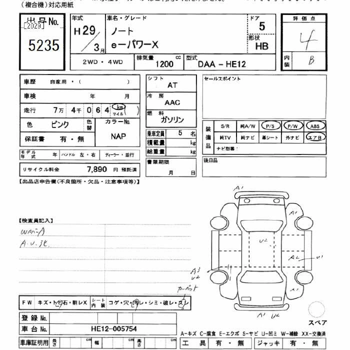 | e-POWER X MODE PREMIER | DAA-HE12 | HR12DE | FF | CVT | 1198cc | 79ps(58kW)/5400rpm | AИ-92 | 2 214 000 | |