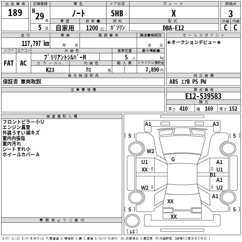 NISSAN NOTE 2017 г., лот № 189