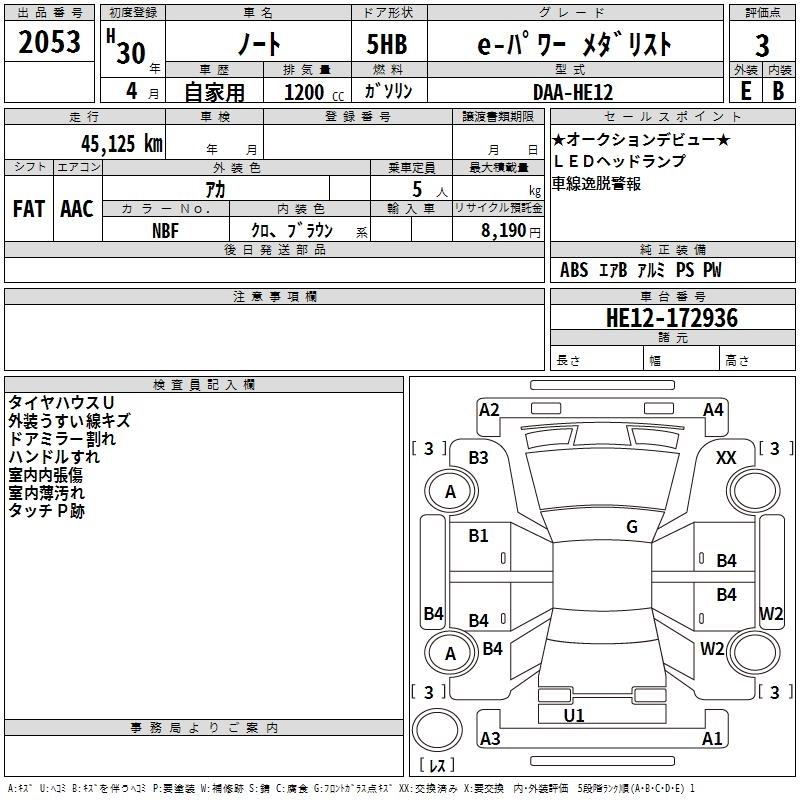 | E-POWER MEDALIST BLACK ARROW | DAA-HE12 | HR12DE | FF | CVT | 1198cc | 79ps(58kW)/5400rpm | AИ-92 | 2 424 600 | |