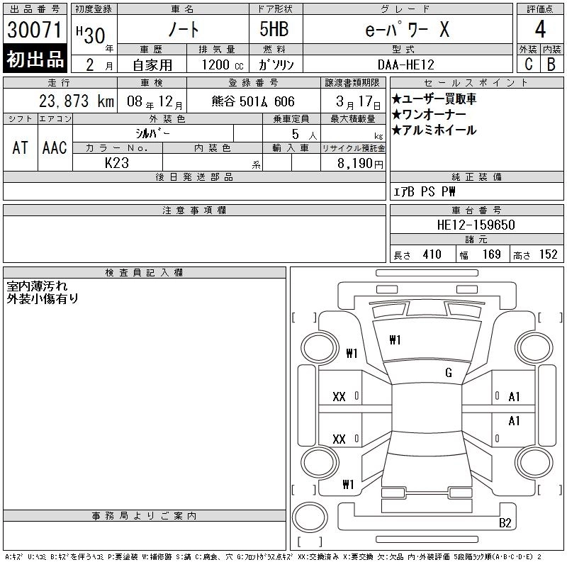 | E-POWER MEDALIST BLACK ARROW | DAA-HE12 | HR12DE | FF | CVT | 1198cc | 79ps(58kW)/5400rpm | AИ-92 | 2 424 600 | |