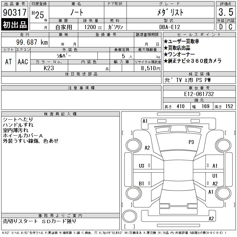 | X AERO STYLE | DBA-E12 | HR12DE | FF | CVT | 1198cc | 79ps(58kW)/6000rpm | AИ-92 | 1 445 850 |