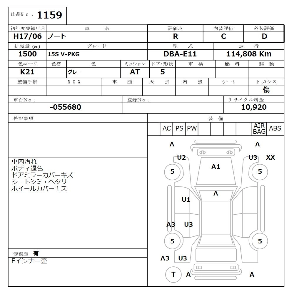 | 15S V PACKAGE | DBA-E11 | HR15DE | FF | CVT | 1498cc | 109ps(80kW)/6000rpm | AИ-92 | 1 323 000 | |