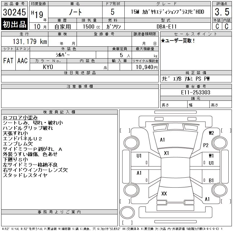 | 15M KAGAYAKI EDITION PLUS NAVI HDD | DBA-E11 | HR15DE | FF | CVT | 1498cc | 109ps(80kW)/6000rpm | AИ-92 | 1 520 400 | |