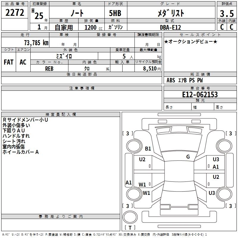 | X | DBA-E12 | HR12DE | FF | CVT | 1198cc | 79ps(58kW)/6000rpm | AИ-92 | 1 304 100 | |