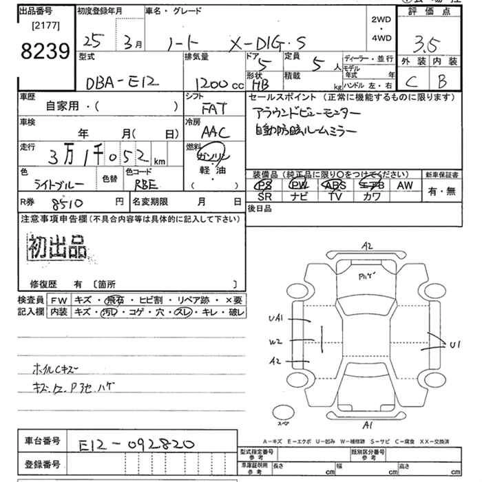 Статус выставлен на аукцион Лот 8239 Аукцион JU Tokyo Дата аукциона 16.03.2026