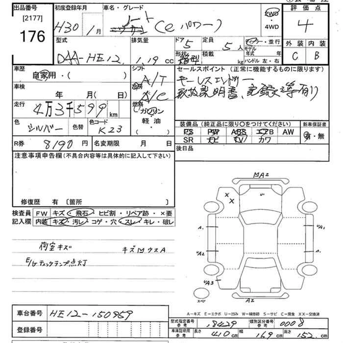 | X C GEAR LIMITED | DBA-E12 | HR12DE | FF | CVT | 1198cc | 79ps(58kW)/6000rpm | AИ-92 | 1 804 680 |