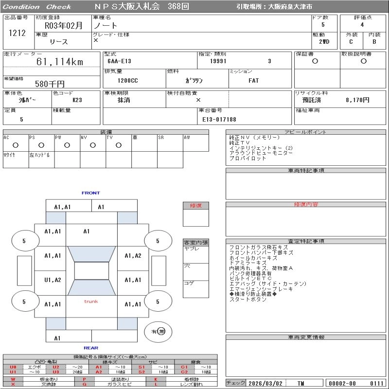 NISSAN NOTE 2021 г., лот № 1212