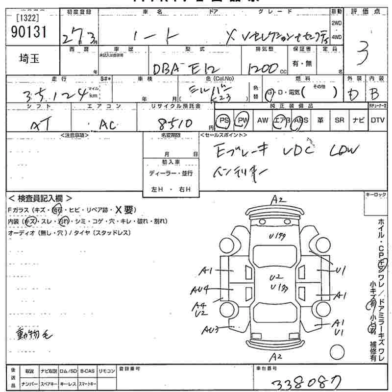 | X AERO STYLE | DBA-E12 | HR12DE | FF | CVT | 1198cc | 79ps(58kW)/6000rpm | AИ-92 | 1 669 680 | |