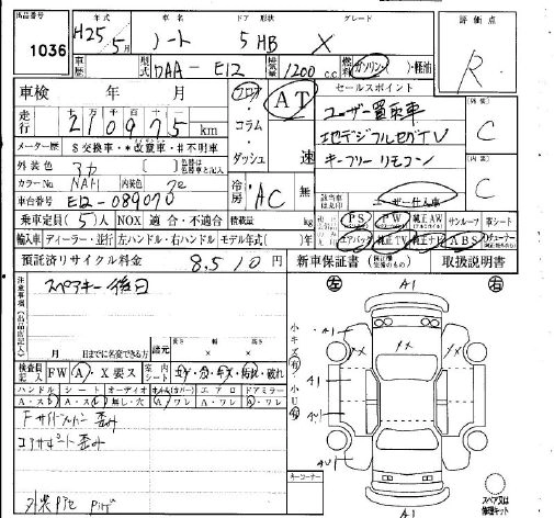 NISSAN NOTE 2013 г., лот № 1036