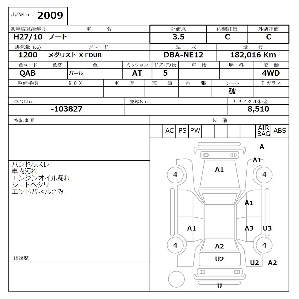 Статус продан Лот 2009 Аукцион Nissan Osaka Дата аукциона 16.03.2026