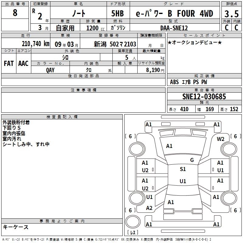 Год выпуска2020 Пробег 211 000 км КузовSNE12 КомплектацияE- POWER B FOUR 4WD