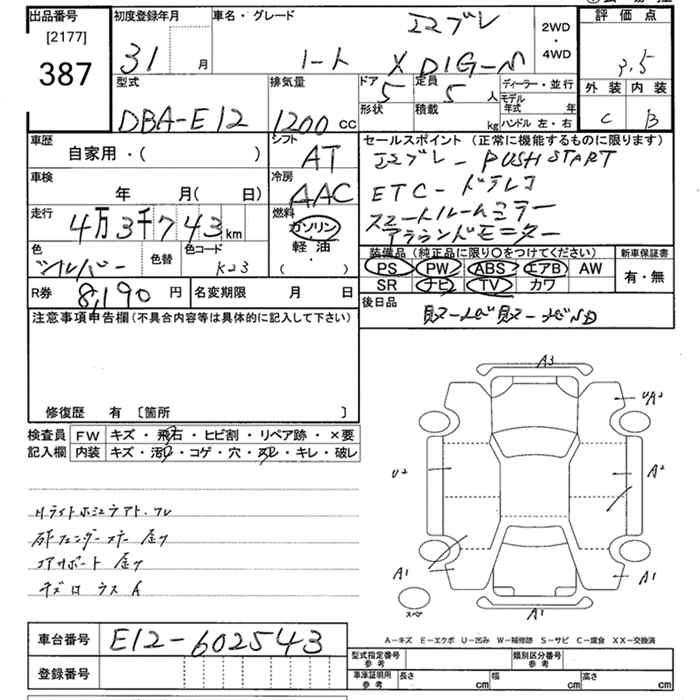 | X C GEAR LIMITED | DBA-E12 | HR12DE | FF | CVT | 1198cc | 79ps(58kW)/6000rpm | AИ-92 | 1 838 100 | |
