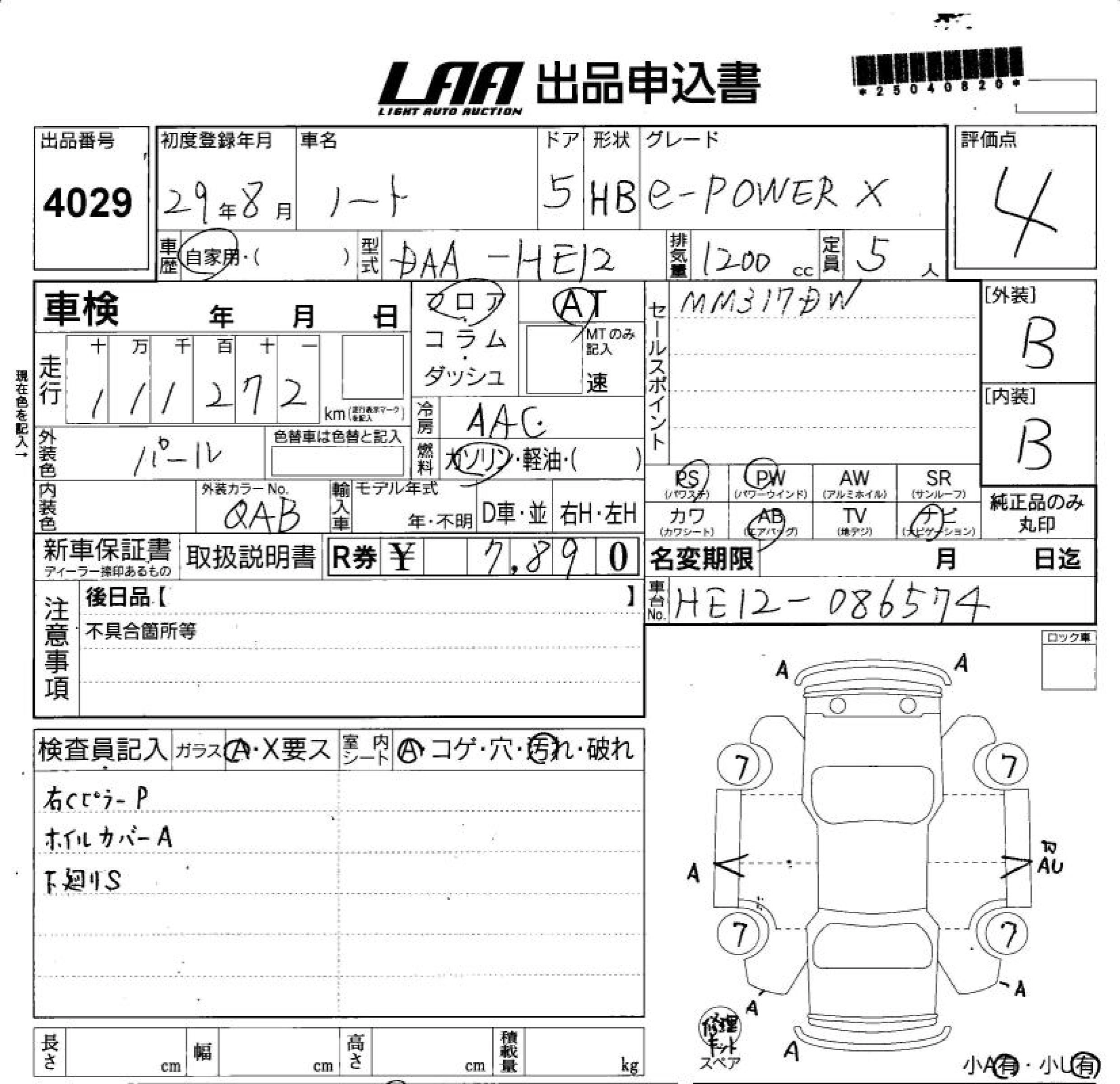 NISSAN NOTE 2017 г., лот № 4029