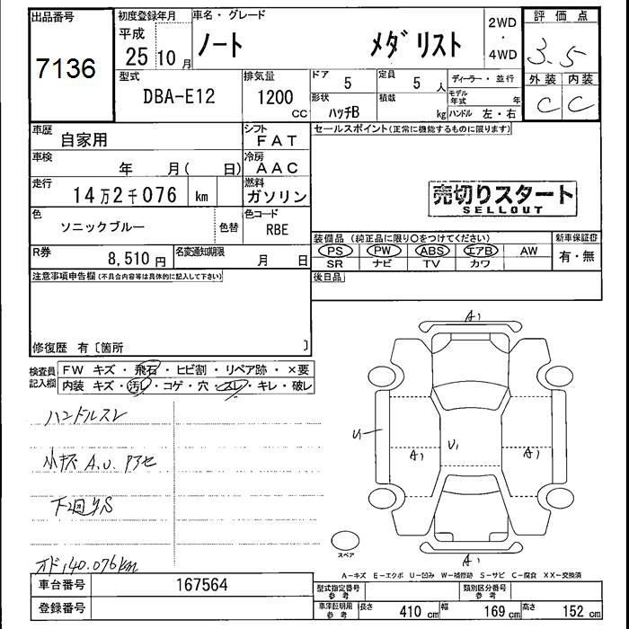 NISSAN NOTE 2013 г., лот № 7136