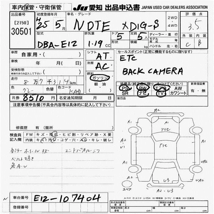 | X DIG-S EMERGENCY BRAKE PACKAGE | DBA-E12 | HR12DDR | FF | CVT | 1198cc | 98ps(72kW)/5600rpm | AИ-92 | 1 620 150 | |