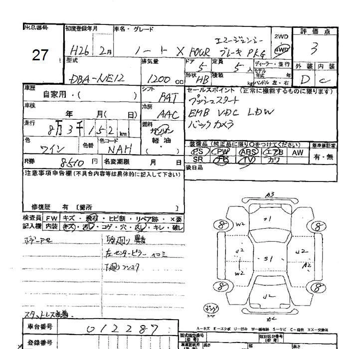 | X FOUR EMERGENCY BRAKE PACKAGE | DBA-NE12 | HR12DE | Part-time 4WD | CVT | 1198cc | 79ps(58kW)/6000rpm | AИ-92 | 1 641 600 | |