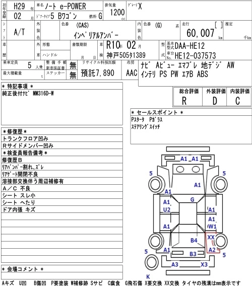 e-POWER X DAA-HE12 HR12DE FF CVT 1198cc 79ps(58kW)/5400rpm AИ-92 1 965 600