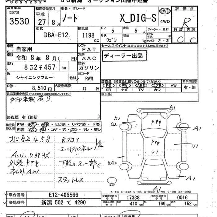 | X DIG-S BLANC NACHURU INTERIOR | DBA-E12 | HR12DDR | FF | CVT | 1198cc | 98ps(72kW)/5600rpm | AИ-92 | 1 875 960 | |