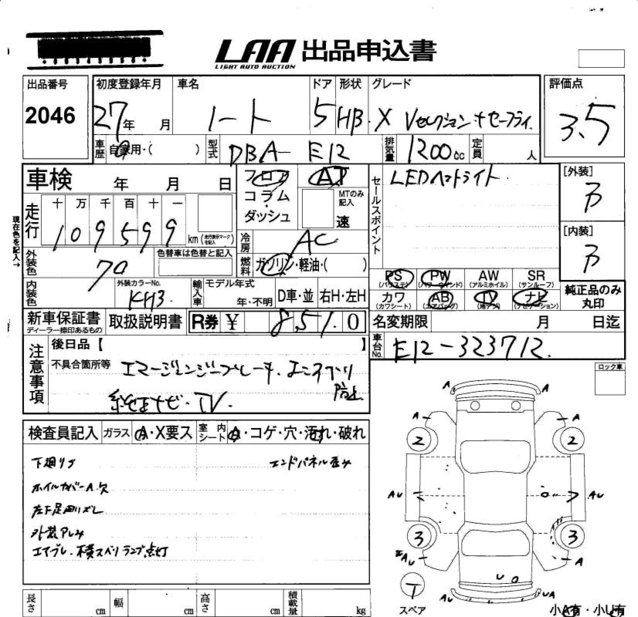 Статус выставлен на аукцион Лот 2046 Аукцион LAA Okayama Дата аукциона 20.03.2026