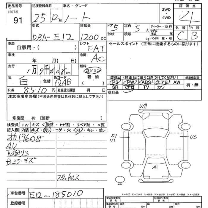 | X | DBA-E12 | HR12DE | FF | CVT | 1198cc | 79ps(58kW)/6000rpm | AИ-92 | 1 304 100 | |