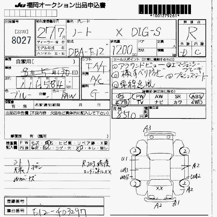NISSAN NOTE 2015 г., лот № 8027
