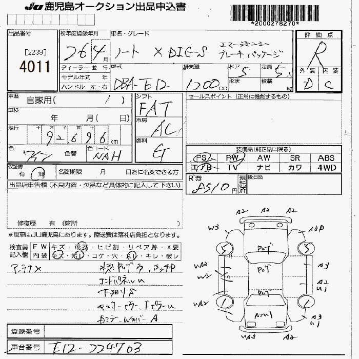 | X DIG-S | DBA-E12 | HR12DDR | FF | CVT | 1198cc | 98ps(72kW)/5600rpm | AИ-92 | 1 580 040 | |