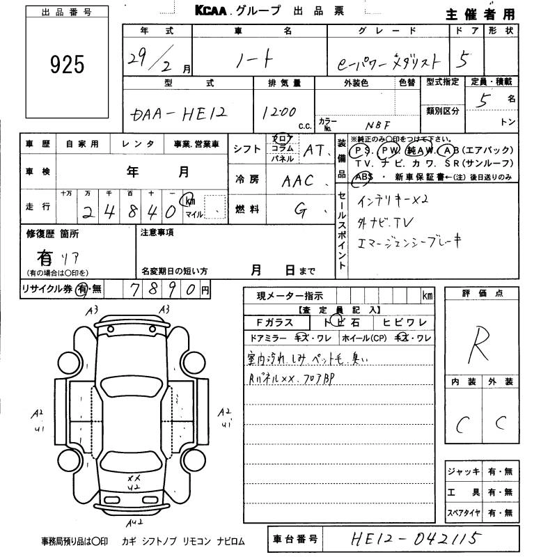 NISSAN NOTE 2017 г., лот № 925
