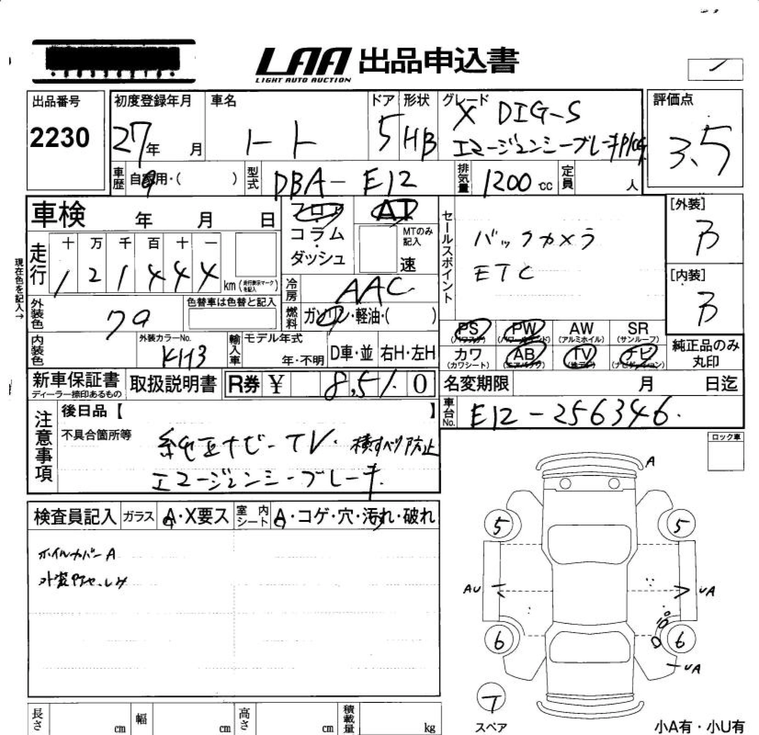 | X | DBA-E12 | HR12DE | FF | CVT | 1198cc | 79ps(58kW)/6000rpm | AИ-92 | 1 464 480 |