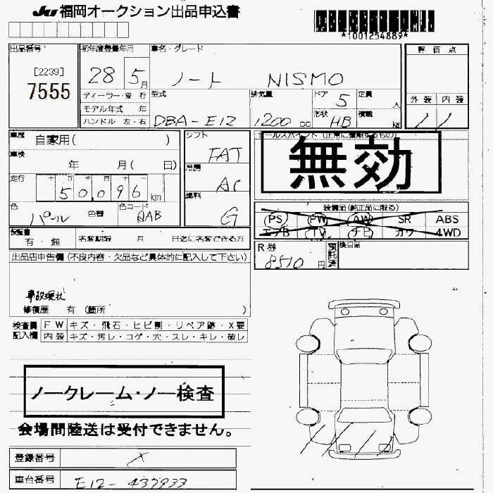 | X | DBA-E12 | HR12DE | FF | CVT | 1198cc | 79ps(58kW)/6000rpm | AИ-92 | 1 479 600 |