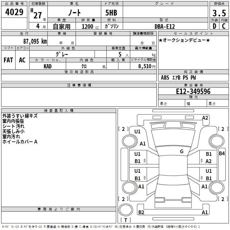| X AERO STYLE | DBA-E12 | HR12DE | FF | CVT | 1198cc | 79ps(58kW)/6000rpm | AИ-92 | 1 669 680 | |