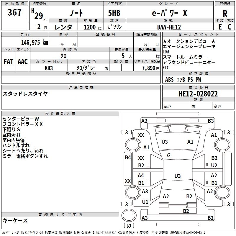 | E-POWER X C GEAR | DAA-HE12 | HR12DE | FF | CVT | 1198cc | 79ps(58kW)/5400rpm | AИ-92 | 2 235 600 | |