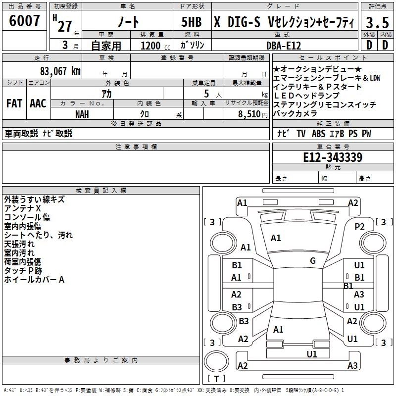 | X DIG-S BLANC NACHURU INTERIOR | DBA-E12 | HR12DDR | FF | CVT | 1198cc | 98ps(72kW)/5600rpm | AИ-92 | 1 875 960 | |