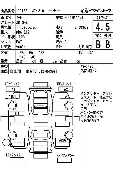 | S | DBA-E12 | HR12DE | FF | CVT | 1198cc | 79ps(58kW)/6000rpm | AИ-92 | 1 249 500 |
