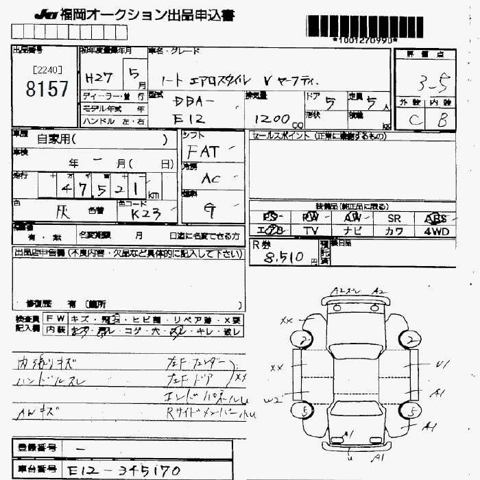 | X DIG-S BLANC NACHURU INTERIOR | DBA-E12 | HR12DDR | FF | CVT | 1198cc | 98ps(72kW)/5600rpm | AИ-92 | 1 875 960 | |