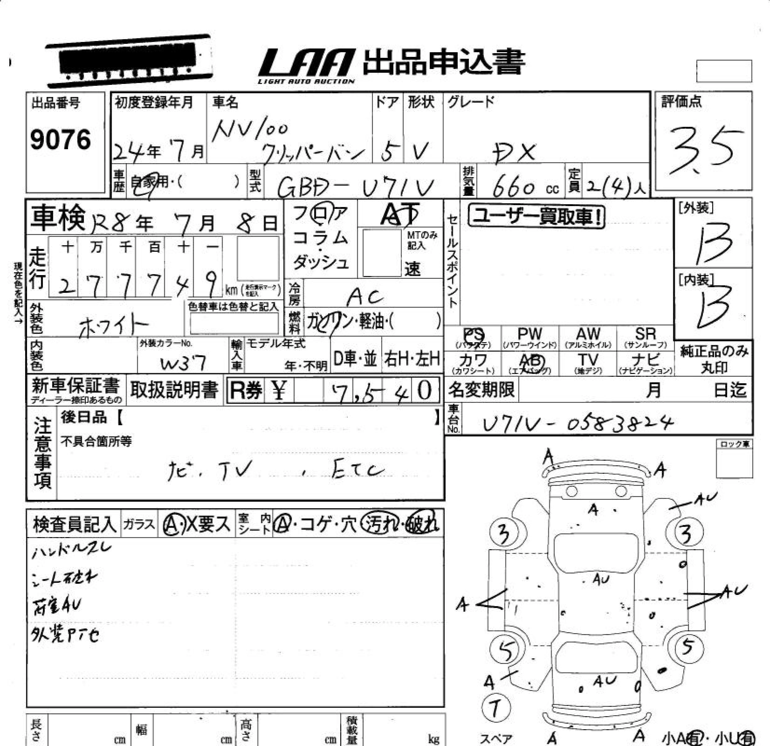 NISSAN NV100 CLIPPER 2012 г., лот № 9076