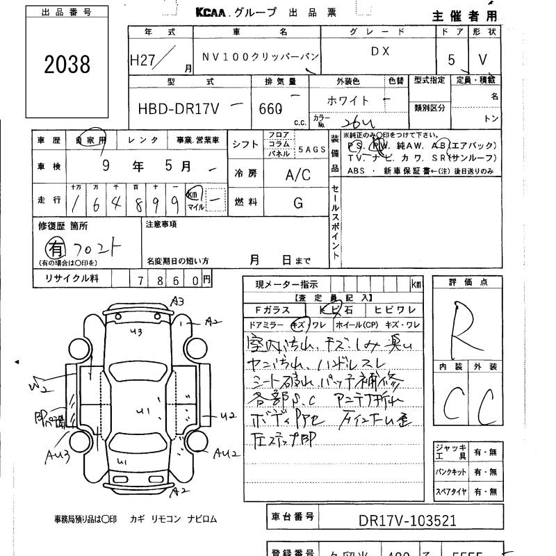 NISSAN NV100 CLIPPER 2015 г., лот № 2038