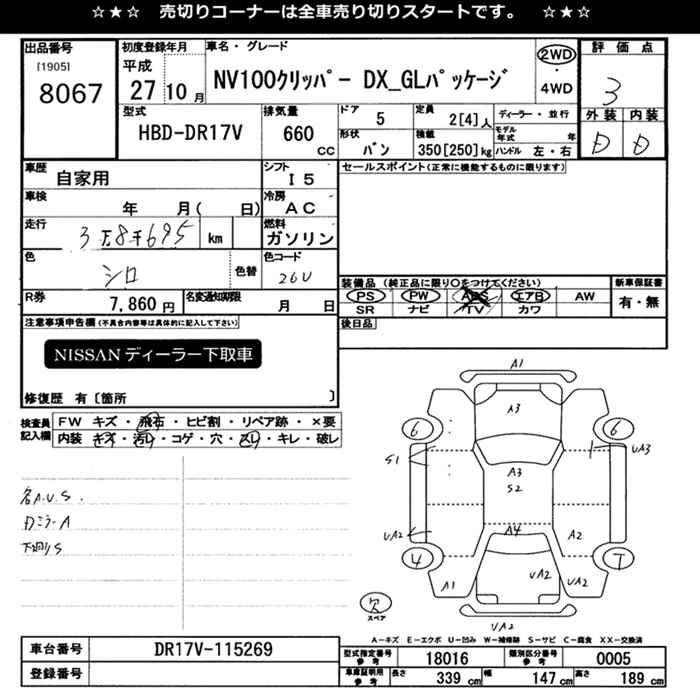 NISSAN NV100 CLIPPER 2015 г., лот № 8067